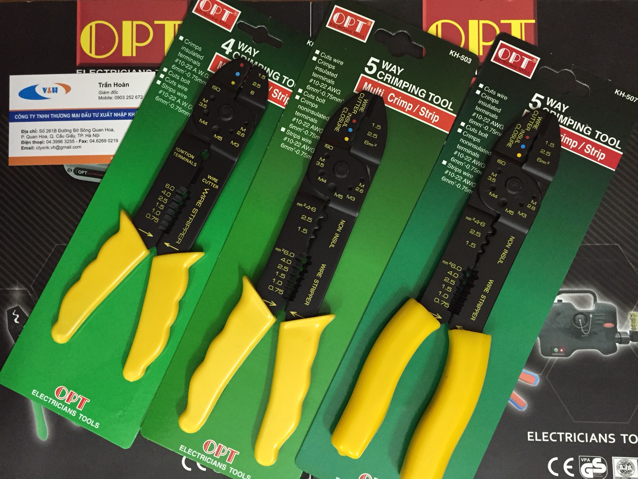 Bộ kìm điện đa năng Opt 3 trong 1 mã Kh-502, 503, 504, 507 cắt dây điện, tuốt dây điện, bấm đầu cos điện, Công ty xnk V&H phân phối giá tốt nhất tại việt Nam